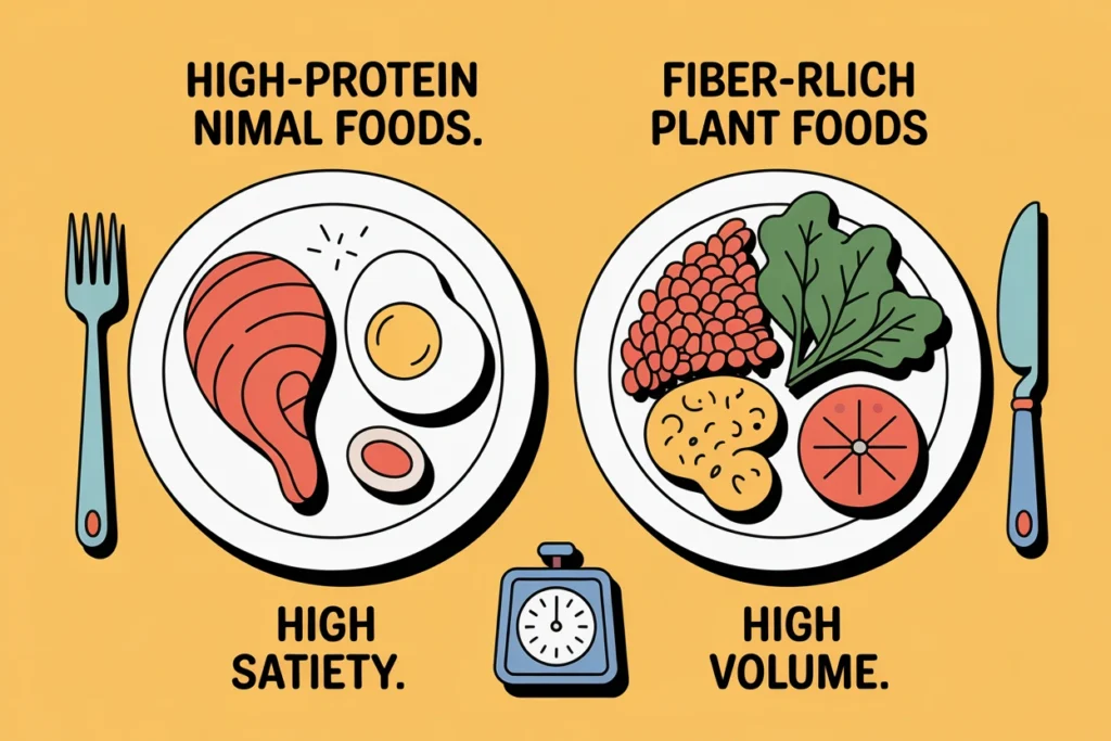 For weight management, both approaches can work, so long as the plan fits your hunger signals and routine. Animal based meals are compact and very satiating, making it easier to stick to a modest calorie target without feeling deprived. Plant based meals can be high volume and fiber-rich, which helps fullness with fewer calories, but protein must be kept high enough to preserve muscle during a deficit. If your weekdays are packed and willpower gets thin by late afternoon, it helps to keep protein front and center so snacking desire drop naturally.